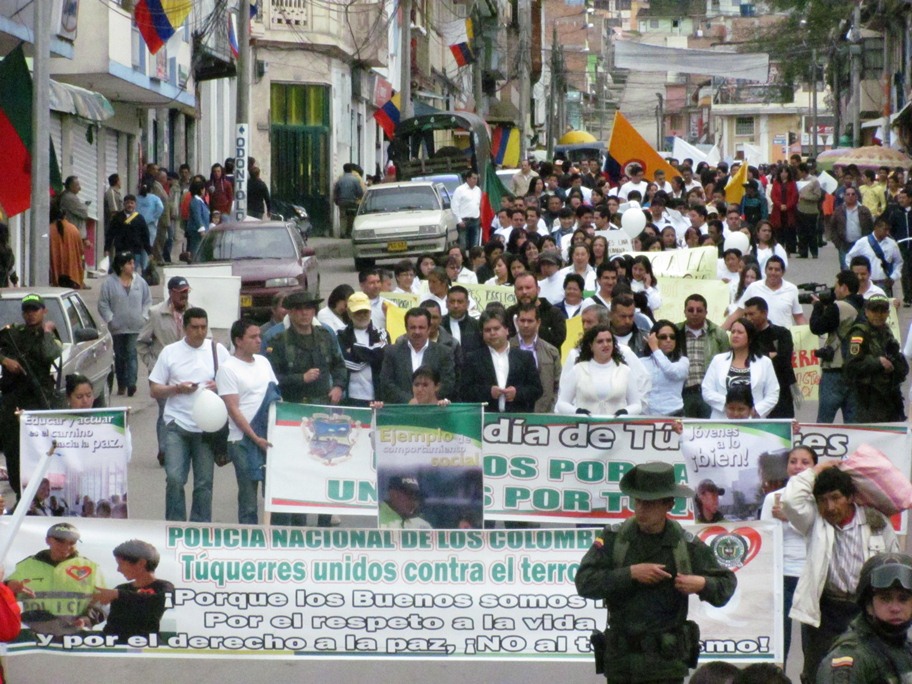 Un número superior a las dos mil personas, entre funcionarios públicos, comerciantes y estudiantes de entidades educativas públicas y privadas y delegaciones de municipios vecinos, marcharon ayer por las calles de Túquerres para pedir el cese a la violencia y no más atentados terroristas contra la comunidad.
